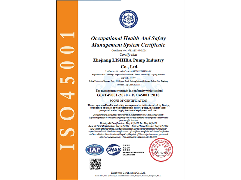 ISO145001:2018认证证书(职业健康安全管理体系)