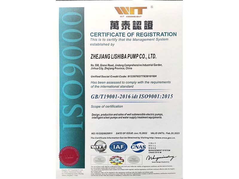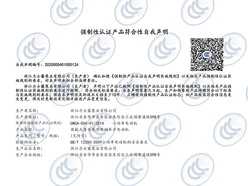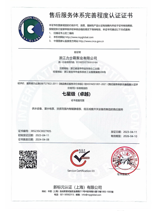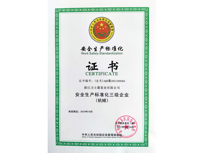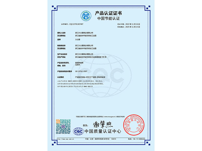 浙江力士霸泵业有限公司(浙江制造认证正书证书编号:CZJM2