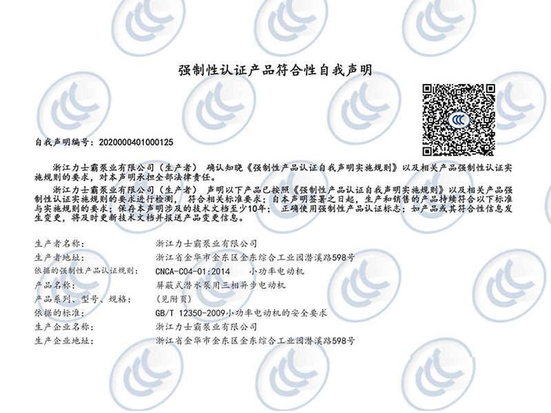 3C认证-屏蔽式潜水泵用三相异步电动机